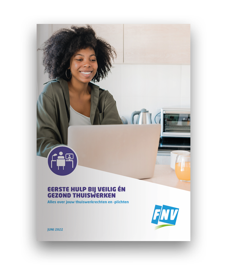 Download de brochure ThuiswerkenTijdens corona zijn mensen massaal gaan thuiswerken. En het is populair gebleven. De FNV heeft onderzoek gedaan onder bijna 5.400 werknemers. En wat blijkt? Veel mensen zijn tevreden over thuiswerken en willen dat een aantal dagen per week blijven doen. Bijna iedereen (90%) wil meer invloed op waar ze werken. Wat ze graag willen afspreken met werkgevers? Niet alleen het recht om zowel thuis als op kantoor veilig en gezond te kunnen werken, maar ook een passende thuiswerkvergoeding.