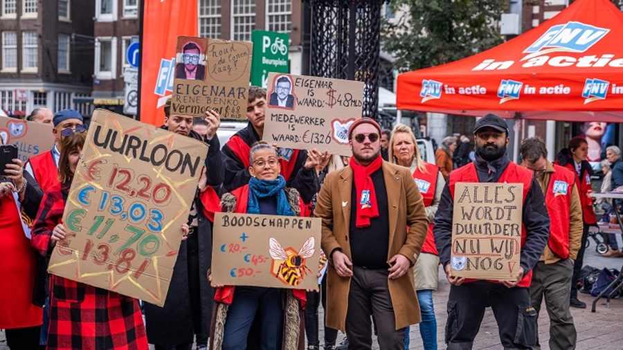 Steun de stakers van de Bijenkorf! Het is enorm moedig dat medewerkers naar buiten stappen en zich uitspreken. Zij hebben een leefbaar loon nodig, en dat krijgen ze nu niet. Medewerkers willen er nu minimaal 10% loon bij.