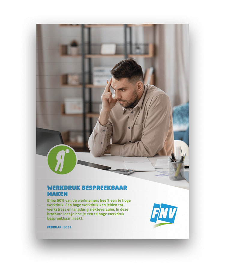 De werkdruk in een aantal sectoren is onacceptabel hoog. Wij als FNV maken ons hard om werkdruk op de kaart te zetten en positieve verandering te realiseren. Samen met beleidsadviseurs Veilig & Gezond Werken hebben wij de brochure Werkdruk bespreekbaar maken ontwikkeld.