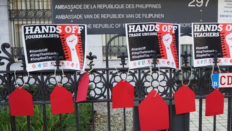 Veel te lang zijn kritische stemmen door de Filippijnse regering bestempeld als terroristen en vijanden van de staat, om hen in diskrediet te brengen en hen kwetsbaar te maken voor aanvallen, stelt EI. Dit is een propagandatechniek die ‘rode tagging’ wordt genoemd. ‘Veel leraren, werknemers, vakbondsleden, journalisten en mensenrechtenactivisten zijn op deze manier het doelwit geworden’, aldus EI. Enkele weken geleden nog is een lid van de ACT, gelieerd aan EI op de Filippijnen, 6 keer in haar klas voor de ogen van haar studenten beschoten. Dit is slechts het laatste in een lange lijst met verschrikkelijke aanvallen. Veel leden van ACT zijn door de nationale politie geprofileerd, worden op straat gevolgd en met de dood bedreigd.
