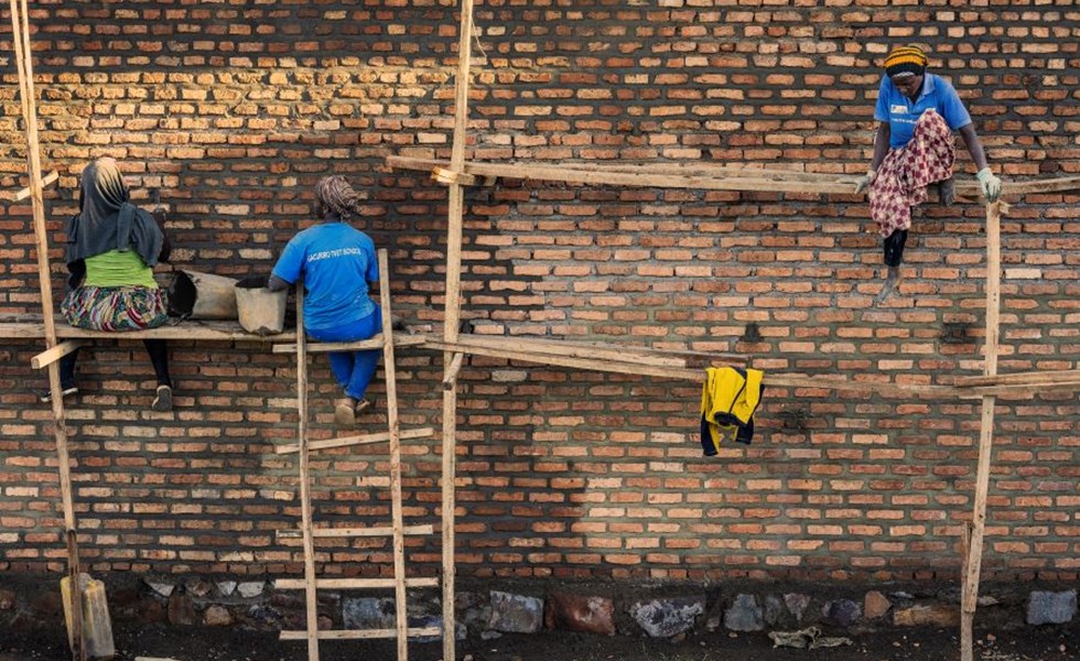 Vrouwen aan het werk in de bouw in Rwanda. Foto: Jan Banning.