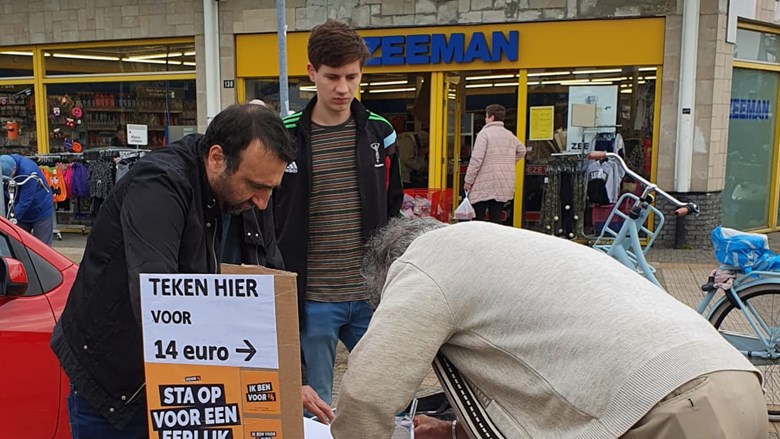 De FNV voert met de campagne Voor 14 sinds begin 2019 actie voor verhoging van het minimumloon naar 14 euro bruto per uur en is in meer dan 60 steden actief. Vanuit de campagne is onlangs ook een brandbrief gestart die de politiek oproept tot de verhoging van het wettelijk minimumloon. Deze brandbrief is inmiddels door ruim 50.000 mensen ondertekend. De ontwikkeling van het minimumloon (€ 10,21 per 1 juli 2020) loopt al jaren achter bij de gemiddelde loonontwikkeling. Sinds de jaren tachtig is de koopkracht van mensen met een minimumloon zo’n 20% achteruitgegaan.