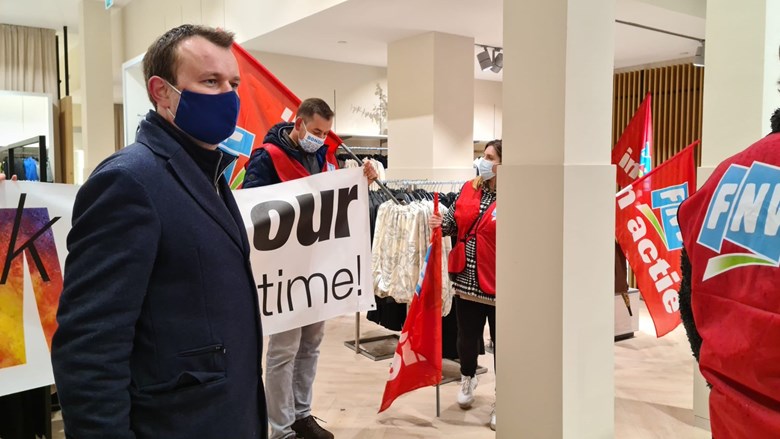 Daarna hebben de medewerkers hun protest voortgezet in de H&M-winkel op de Dam. Na interventie van de politie is de petitie overhandigd aan de lokale winkelmanager en hebben de medewerkers de winkel verlaten.