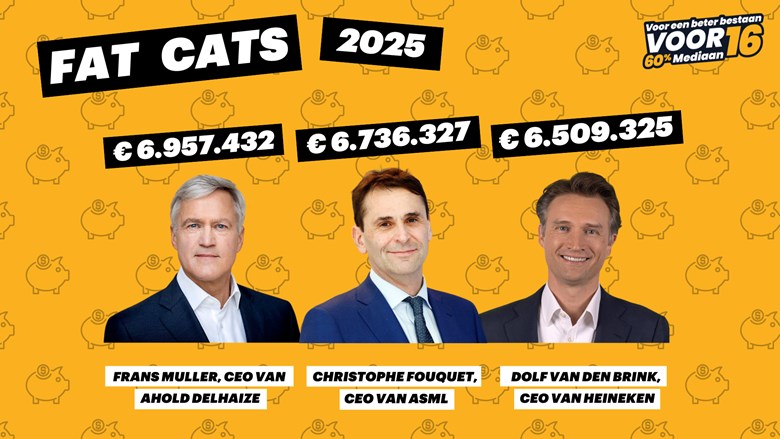 Dinsdag 7 januari is het ‘Fat Cat Day’. De dag waarop de 16 meest invloedrijke CEO’s in Nederland al een beloning op zak hebben waar iemand met een minimumloon nog het hele jaar voor moet werken.