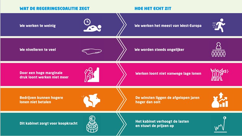De FNV presenteerde eerder vandaag het rapport: Het echte verhaal van werkend Nederland. Hier worden 5 misvattingen ontkracht die de huidige coalitiepartijen waaronder de VVD hardnekkig in stand houden.
