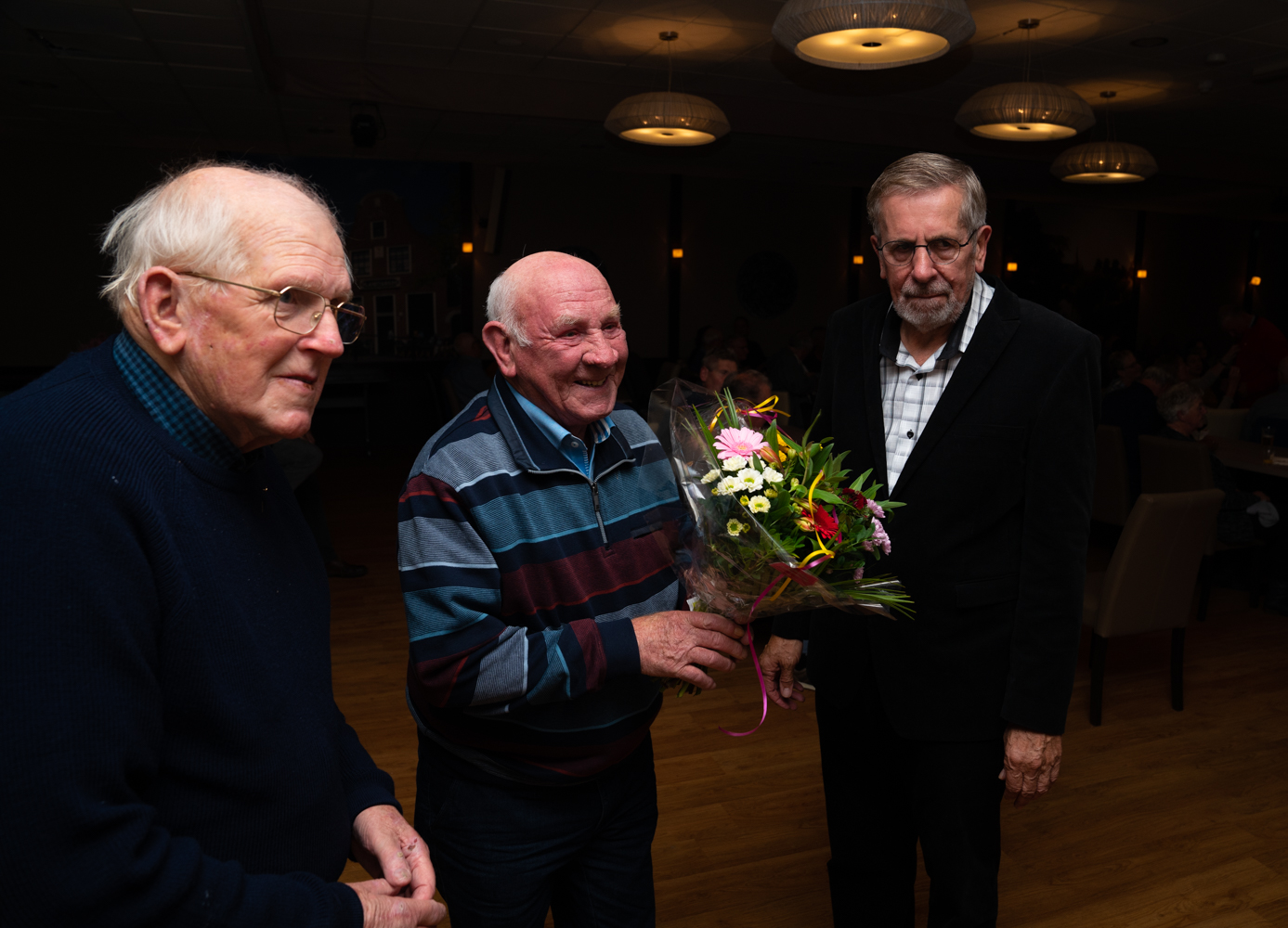 Mark de Lange, voorzitter, leidde de huldiging. Totaal werden er 64 jubilarissen gehuldigd. Waaronder twee jubilarissen die 60 jaar lid zijn; Dhr. J. v.d. Meulen uit Menaldum en dhr. P. Alkema uit Franeker. Daarnaast waren er jubilarissen met 25 jaar lidmaatschap, 40 jaar lidmaatschap en 50 jaar lidmaatschap. Vanwege de leeftijd waren 3 jubilarissen die 70 jaar lid zijn niet bij de bijeenkomst.