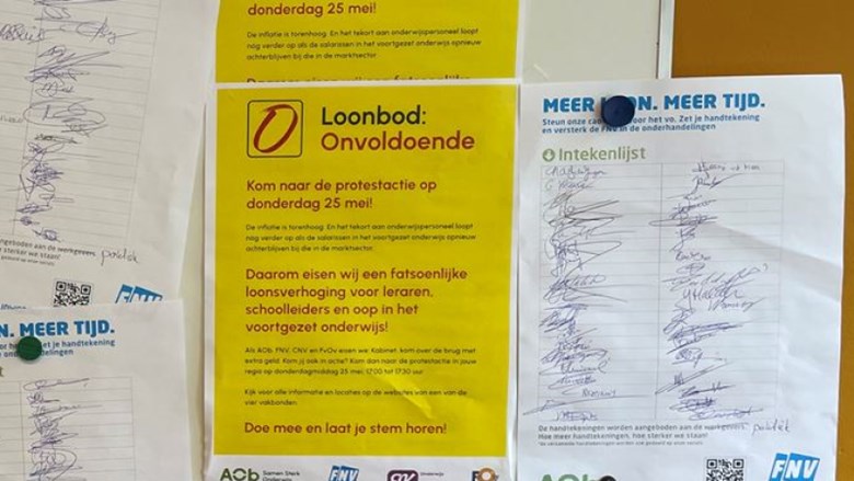 Het loonbod van het kabinet is volstrekt onvoldoende om de salarissen in het voortgezet onderwijs te betalen. Daarom roept de FNV, samen met de AOb, CNV en FvOv, jou en je collega’s op om donderdag 25 mei naar een van de protestbijeenkomsten te komen.