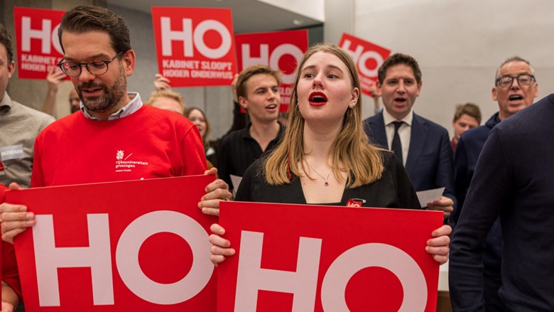 Het kabinet bezuinigt 1 miljard euro op hoger onderwijs en wetenschap. ‘Regelrecht rampzalig’, vindt Bas van Weegberg, lid van het dagelijks bestuur van FNV, dat plan. ‘Den Haag zet de bijl in de kwaliteit van ons onderwijs. Duizenden banen bij hogescholen en universiteiten staan op de tocht. De werkdruk in het hoger onderwijs is al hoog, dat wordt door deze bezuinigingen alleen maar erger. Het carrièreperspectief van jonge docenten en onderzoekers verdwijnt, en zo wordt ook een stuk van de toekomst van het Nederlandse onderwijs kapot gemaakt.’