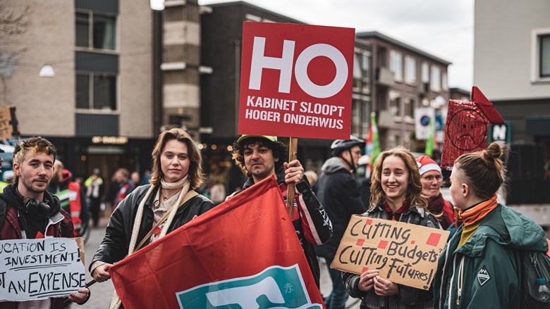 ‘Deze bezuinigingen zijn een enorme bedreiging voor de Nederlandse wetenschap en veroorzaken een grote verschraling van het onderwijs’, zegt Gijs Kooistra, bestuurder van FNV Onderwijs. ‘De Rotterdam School of Management spreekt nu al over een grote reorganisatie, maar ook medewerkers op andere faculteiten zijn hun baan niet zeker als deze bezuinigingen doorgaan. En moeten de medewerkers die hun baan kunnen houden dan maar hetzelfde werk met minder mensen gaan doen, terwijl de arbeidsinspectie nu al met boetes dreigt omdat de werkdruk veel te hoog is? Dit kabinet stort de sector in een grote crisis, terwijl juist het hoger onderwijs zo belangrijk is voor de toekomst van ons land.’