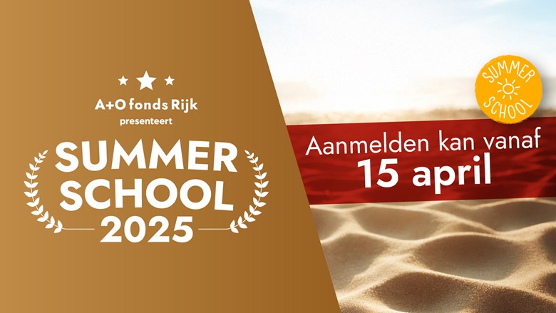 Het is bijna zover: de twaalfde editie van de Summerschool van het A+O fonds Rijk komt eraan! Je kunt je aanmelden vanaf dinsdag 15 april aanstaande om 12.00 uur op de website van Summerschool 2025. Zet deze datum snel in je agenda, want er is maar een beperkt aantal plaatsen beschikbaar. Zorg dat jij er dit jaar ook bij bent!