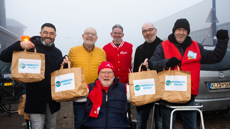 Ze deelden ludieke hulpmiddelenpakketjes uit aan hun collega's in de Metaal bij de poorten van hun gezamenlijke bedrijven in de regio. Zo maakten zij met een kwinkslag duidelijk dat eerder kunnen stoppen met zwaar werk noodzakelijk is. Hiermee hoopten ze steun en actiebereidheid te creëren bij hun collega's, werkzaam bij buurbedrijven in de regio.