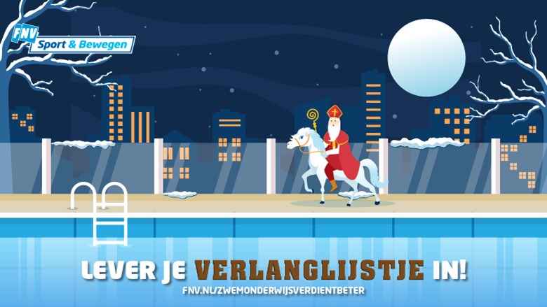 Sinterklaas is in het land. Weet hij wat er in de zwembaden speelt? Heeft hij voor al die medewerkers die het afgelopen jaar iets extra’s hebben geleverd, ook iets extra’s in zijn zak? Laten we voorkomen dat Sint de boot mist, en geef hem jouw lijstje. Wat wil jij graag dat hij regelt in de zwembaden? Laat het ons uiterlijk 1 december weten.