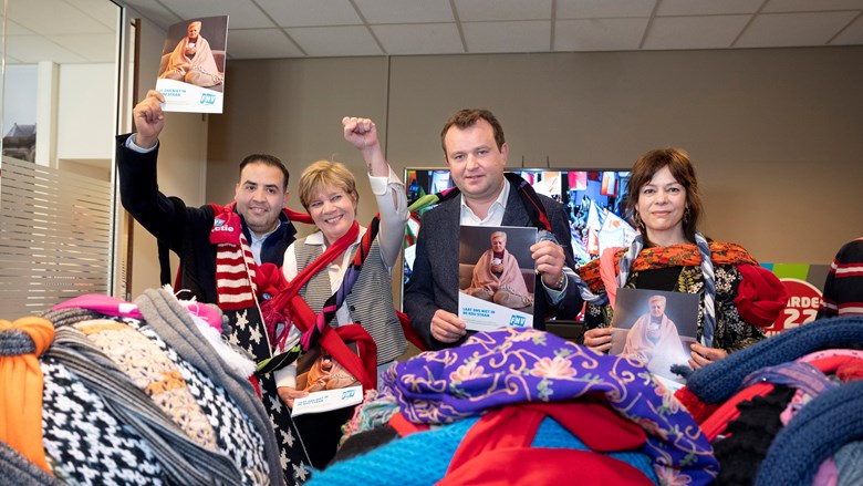 Om aandacht te vragen voor deze doelgroep heeft de FNV woordvoerders van verschillende partijen uitgenodigd voor een lunchbijeenkomst in het FNV Vakbondshuis in Den Haag. Daar werd de ‘Sjaal van Solidariteit’ overhandigd om aandacht te vragen voor alle mensen die er op dit moment niet zo warm bij zitten.