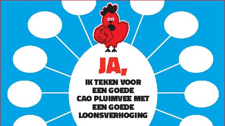 Tijd om te gaan actievoeren. De werkgevers willen helemaal niets afspreken in de cao Pluimvee: nul-komma-nul. Jullie hebben dit eindbod massaal afgewezen. En de werkgevers reageren niet op onze brieven. We trekken samen op met CNV Vakmensen. Ook hun leden hebben het eindbod afgewezen. Jij doet toch ook mee?