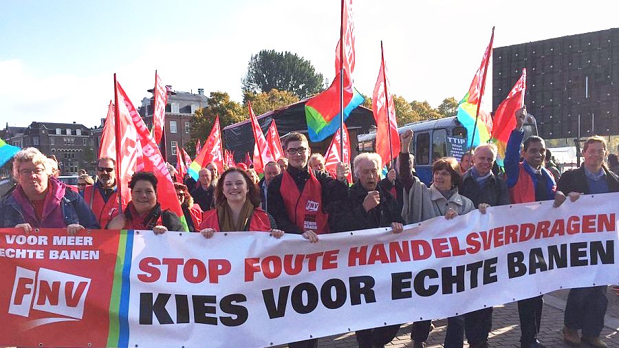 De handelsakkoorden, zoals CETA, EU-Mercosur en ECT, vinden wij als FNV onverantwoord.