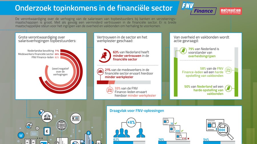 FNV Finance onderzocht topbeloningen in de financiële sector. We vroegen aan 1.700 Nederlanders, van student tot gepensioneerde, hoe zij denken over de topbeloningen in de financiële sector.